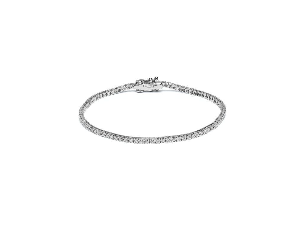 A refined expression of timeless elegance from Della Fonte. Crafted in 18k white gold (750%), this bracelet is set with a continuous line of diamonds totalling approximately 0.60 ct, selected for their exceptional brilliance and graded D–E / VS for superior color and clarity.