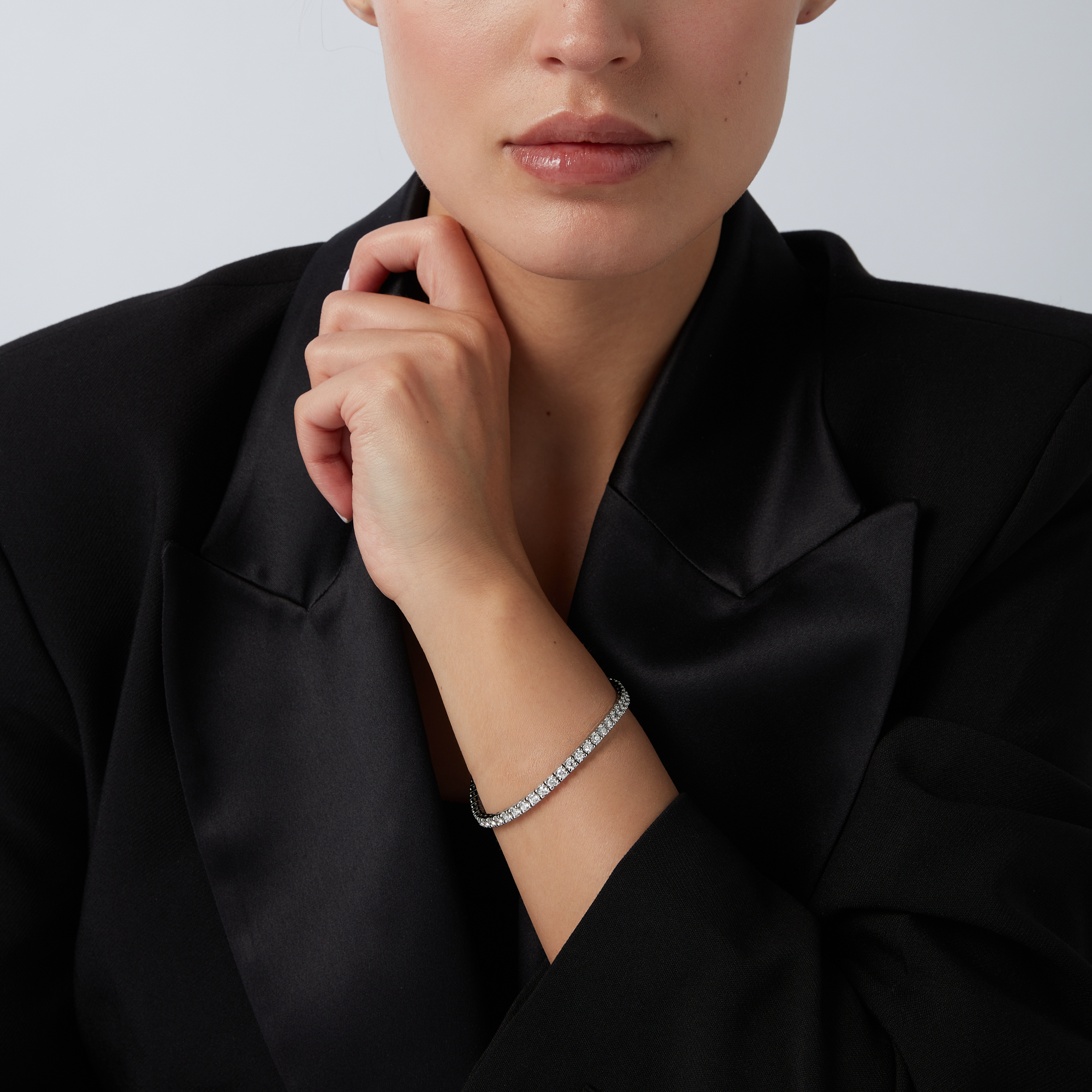 S celkovou hmotností diamantů přibližně 3,10 ct, třídou D–E / VS, nabízí náramek čistý, zářivý lesk, který působí sofistikovaně a zároveň nenuceně. Jeho čisté proporce a plynulá konstrukce zajišťují výjimečné pohodlí, díky čemuž je tento šperk navržen tak, aby se dal snadno nosit – od každodenní elegance až po nejelegantnější příležitosti.