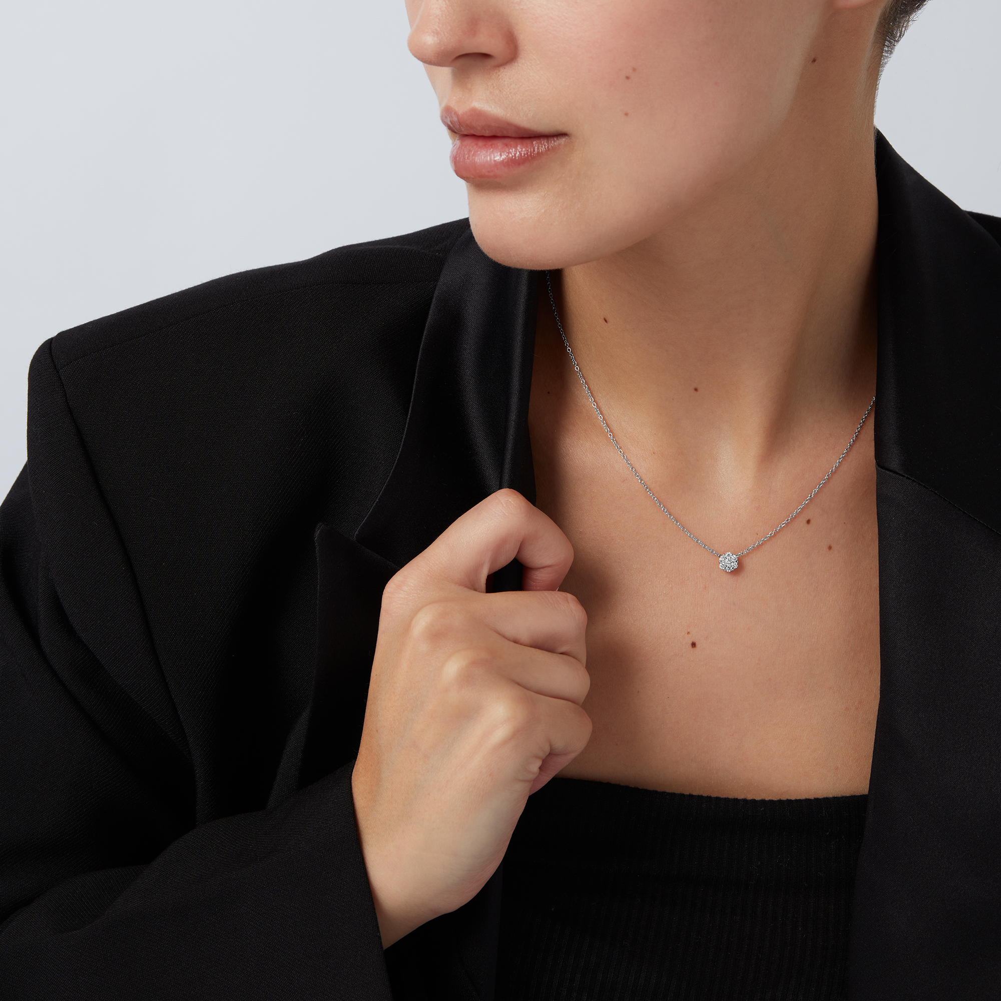 Design, který je součástí kolekce MAGIC, se vyznačuje vyvážeností a umírněností. Čisté linie a jemné proporce umožňují diamantům přirozeně zachycovat světlo, díky čemuž je tento šperk snadno kombinovatelný. Tento nadčasový a decentní náhrdelník je navržen tak, aby s elegancí doprovázel jak každodenní okamžiky, tak i nejvýznamnější životní události.