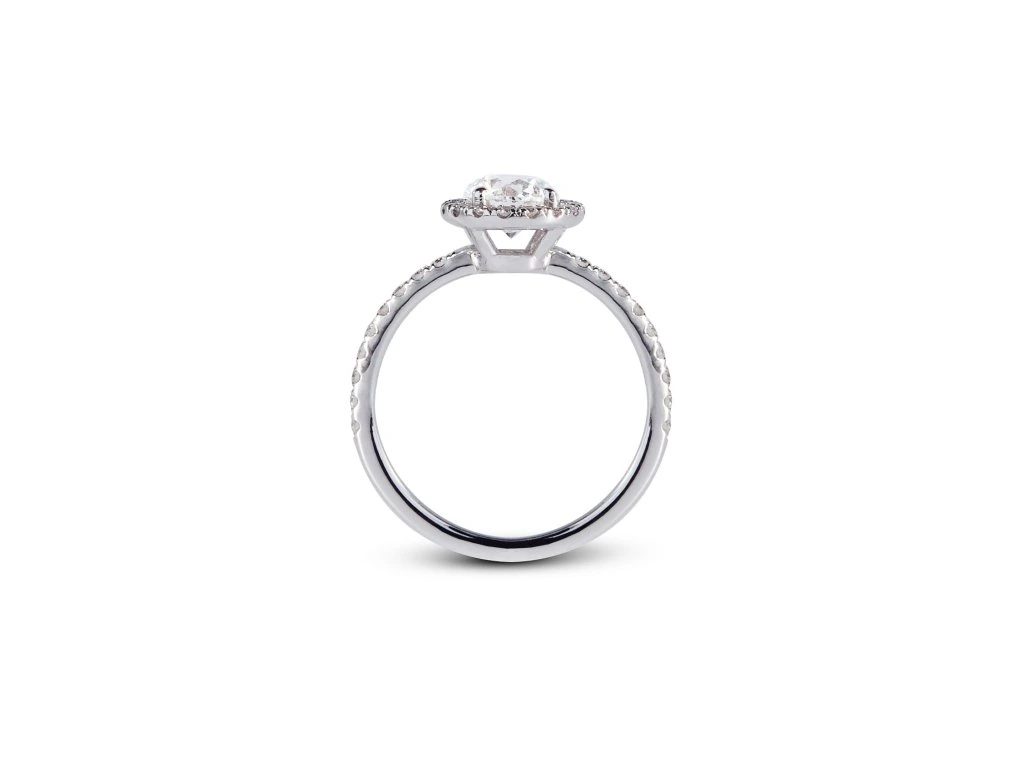 A luminous declaration of love, this engagement ring is designed to capture the emotion of life’s most meaningful promise. At its centre, a radiant diamond is encircled by a delicate halo of accent stones, a composition that magnifies brilliance and creates a captivating depth of light.