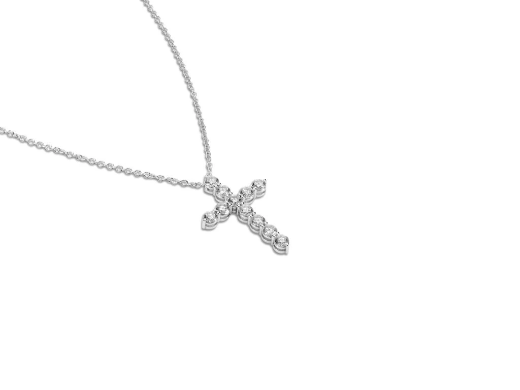 A refined interpretation of a timeless symbol, this diamond cross necklace embodies purity and balanced elegance. Individually set natural diamonds form a harmonious composition, allowing light to flow evenly across the surface and enhance its subtle brilliance from every angle.
