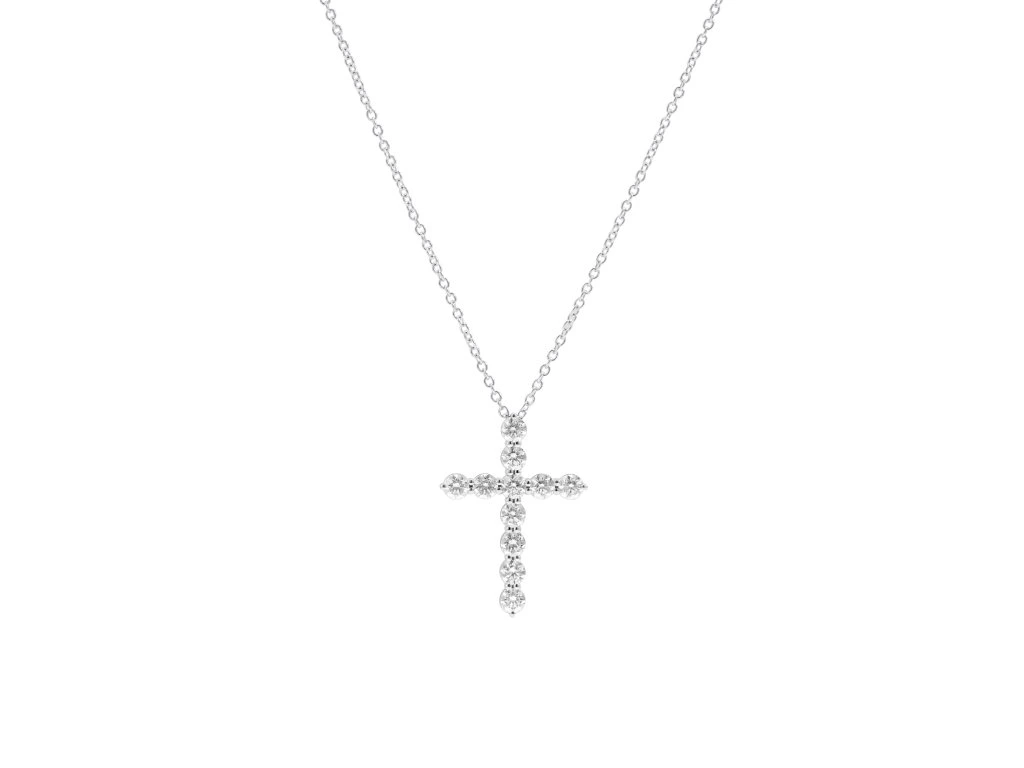 Necklace Cross White Gold with Diamonds 0.85 ct